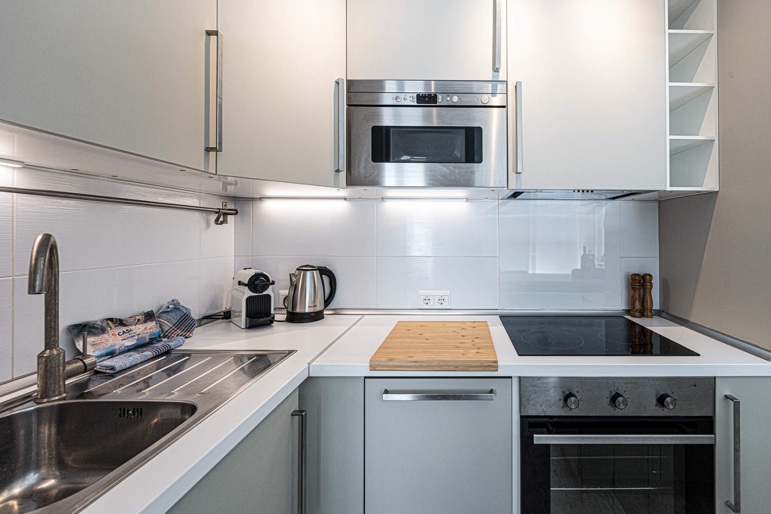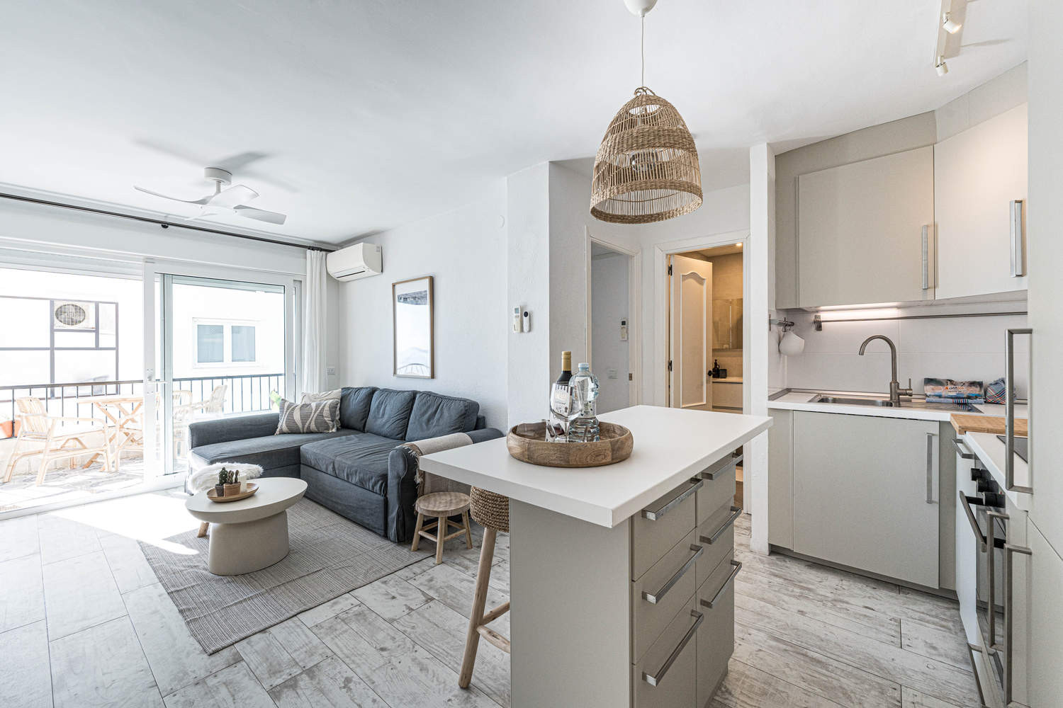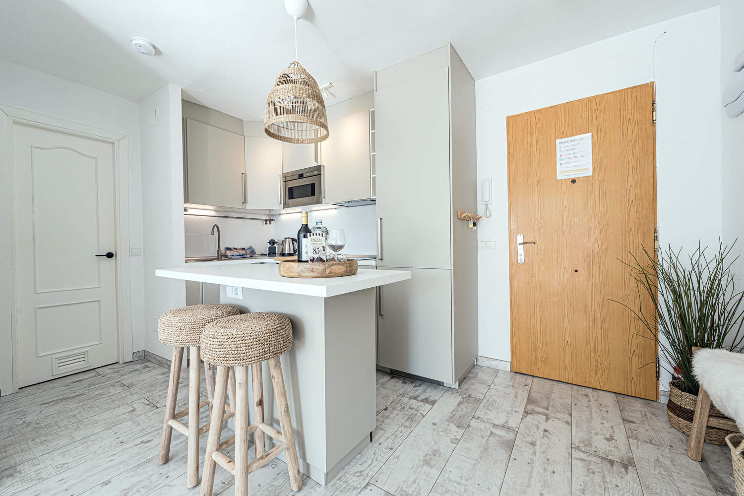 Comodidades: El apartamento dispone de WiFi de alta velocidad, aire acondicionado, cocina abierta totalmente equipada con electrodomésticos de calidad, cafetera Nespresso, hervidor eléctrico, tostadora y menaje completo. Incluye aspiradora Dyson y secador de pelo para una estancia más cómoda.
