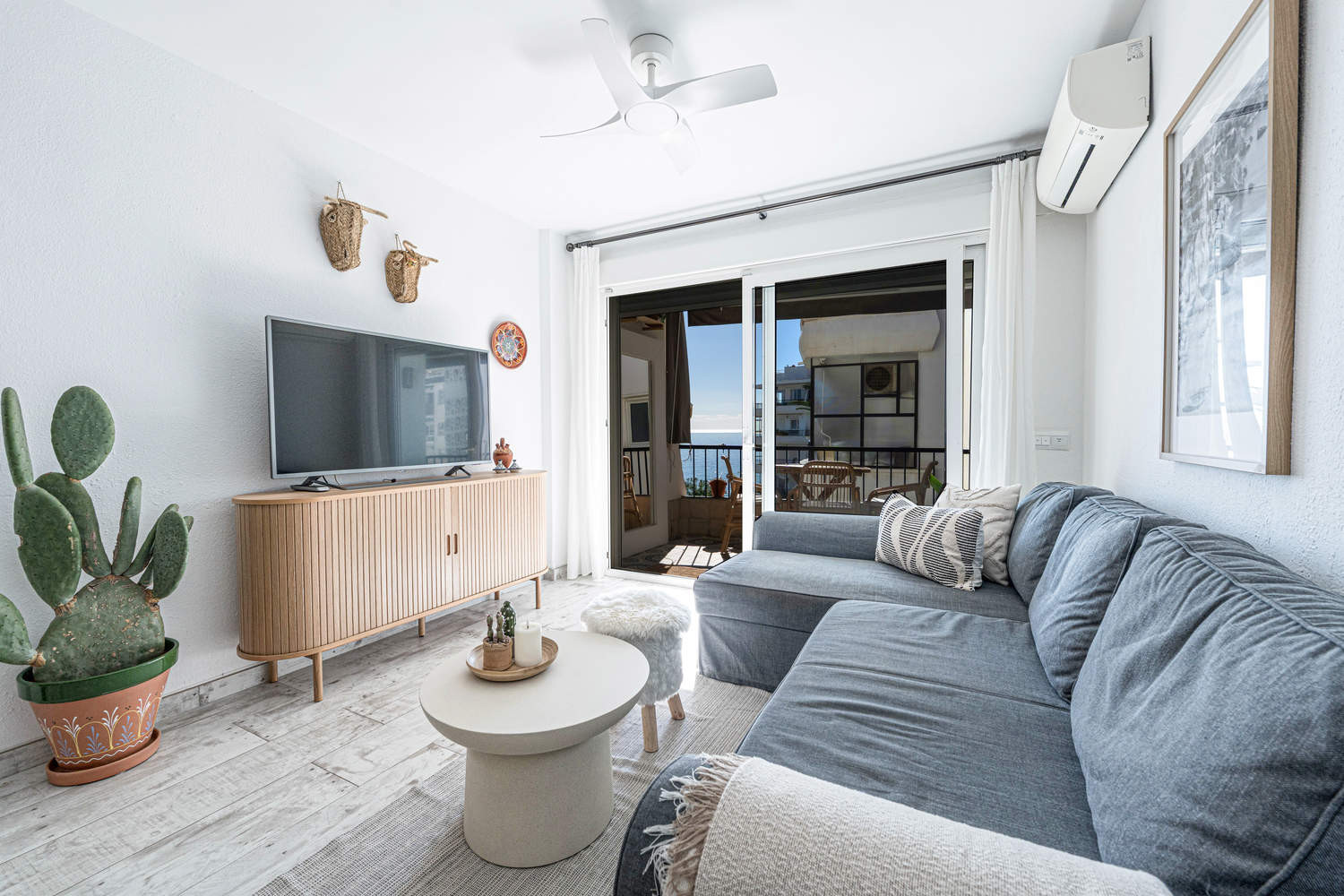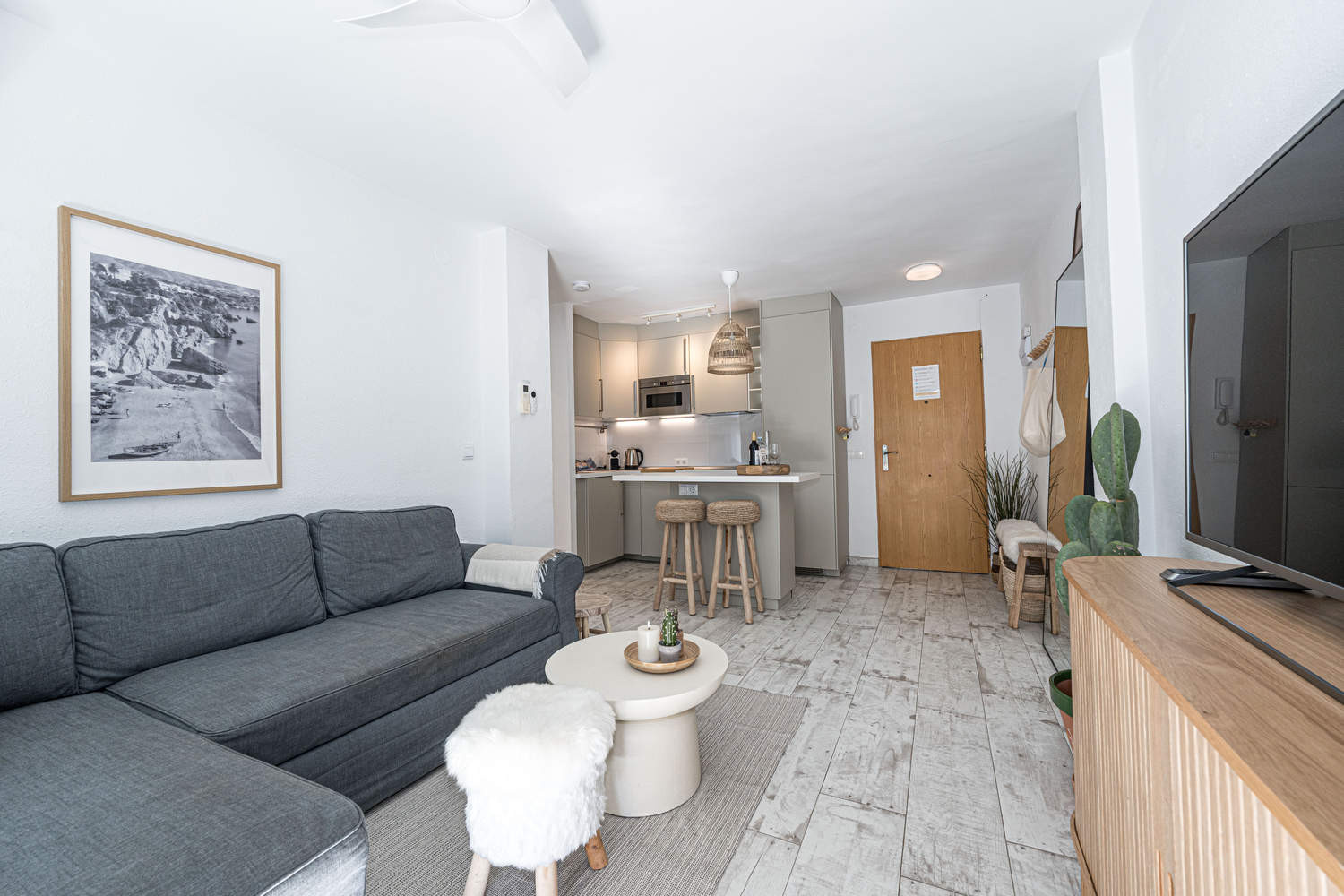 La Propiedad: Apartamento moderno de 1 dormitorio, recién renovado y decorado con mucho gusto. Con una superficie de 50 m² aproximadamente, es ideal para parejas que buscan tranquilidad, confort y una ubicación inmejorable junto al mar.