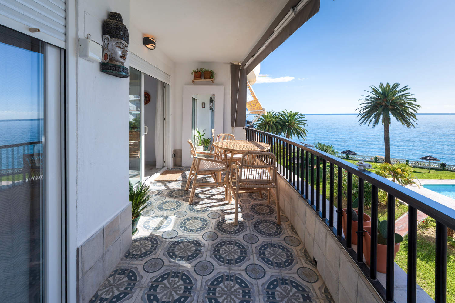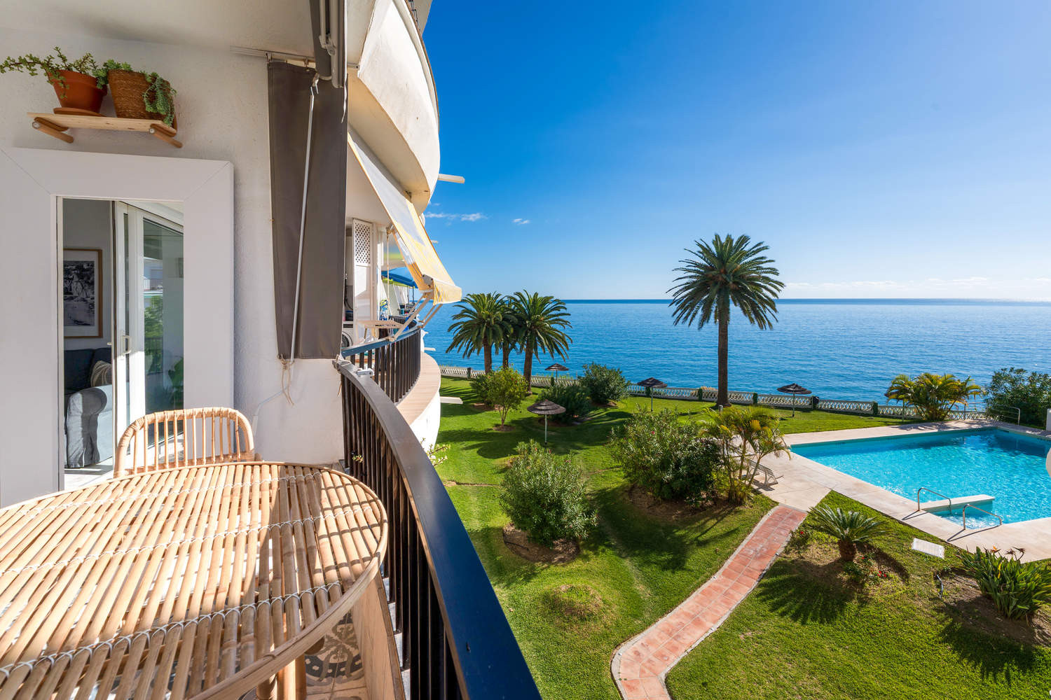 Disfrute de un maravilloso y recién reformado apartamento en Nerja con espectaculares vistas al mar y a la piscina, situado en el exclusivo Conjunto Acapulco Playa. Un alojamiento perfecto para dos personas, a pocos metros de la Playa El Salón y del Balcón de Europa.