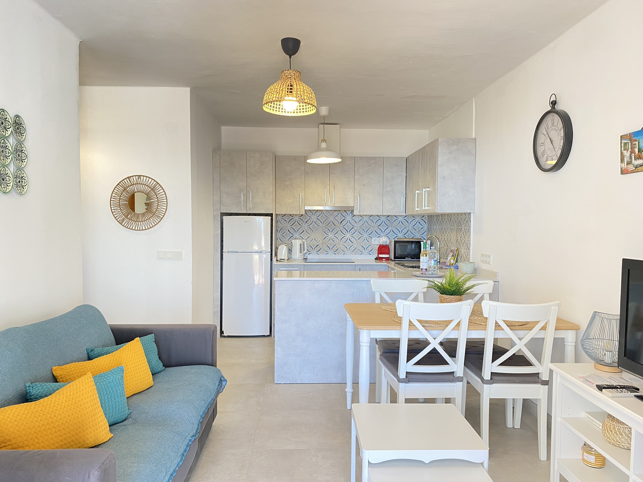 Sólo a 200 metros del apartamento, hay un supermercado, varios bares y restaurantes, una piscina grande comunitaria con zona infantil y unas vistas impresionantes a hacia el mar y las montañas.