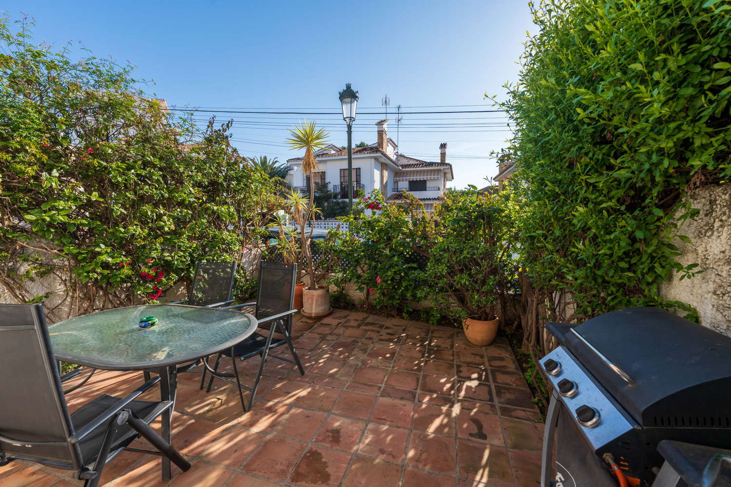 Vida interior y exterior: El salón conecta directamente con una terraza privada equipada con mesa y barbacoa de gas, el lugar ideal para cenas al fresco en las noches de verano. Además, el dormitorio principal cuenta con un balcón propio. El complejo residencial ofrece amplios jardines y acceso a dos fantásticas piscinas comunitarias para refrescarse sin salir de la urbanización.