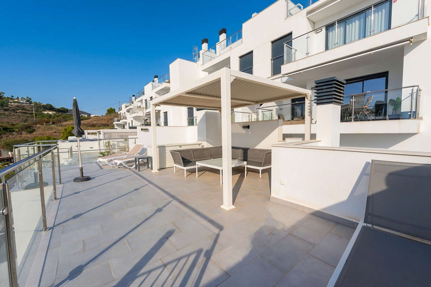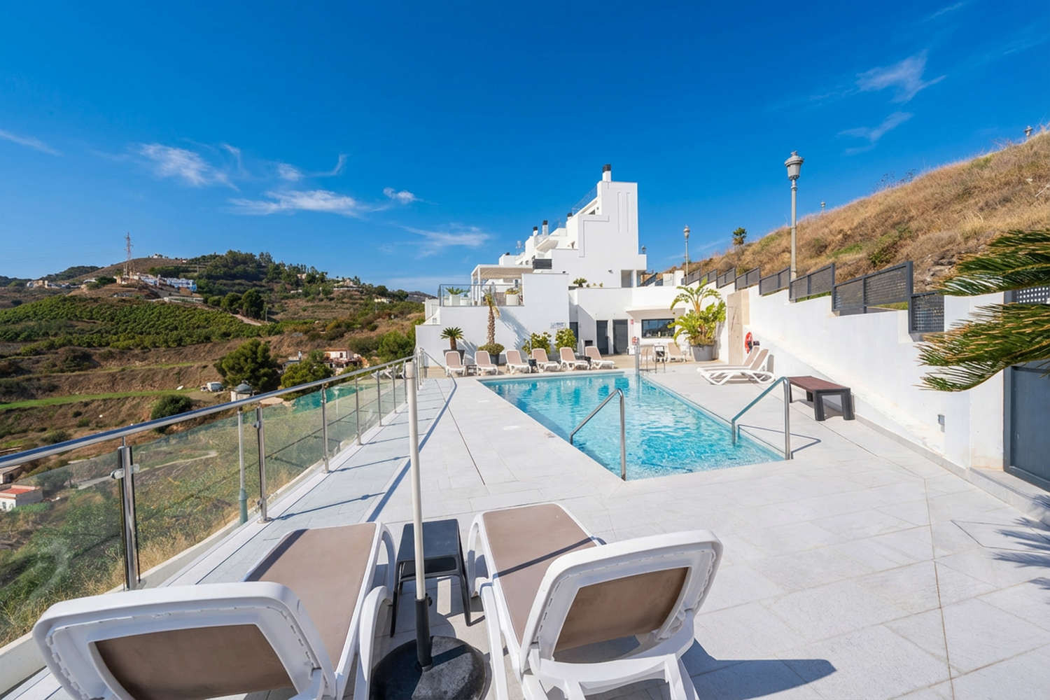 Lovely apartment with a fantastic view, spacious terrace and nice pool.