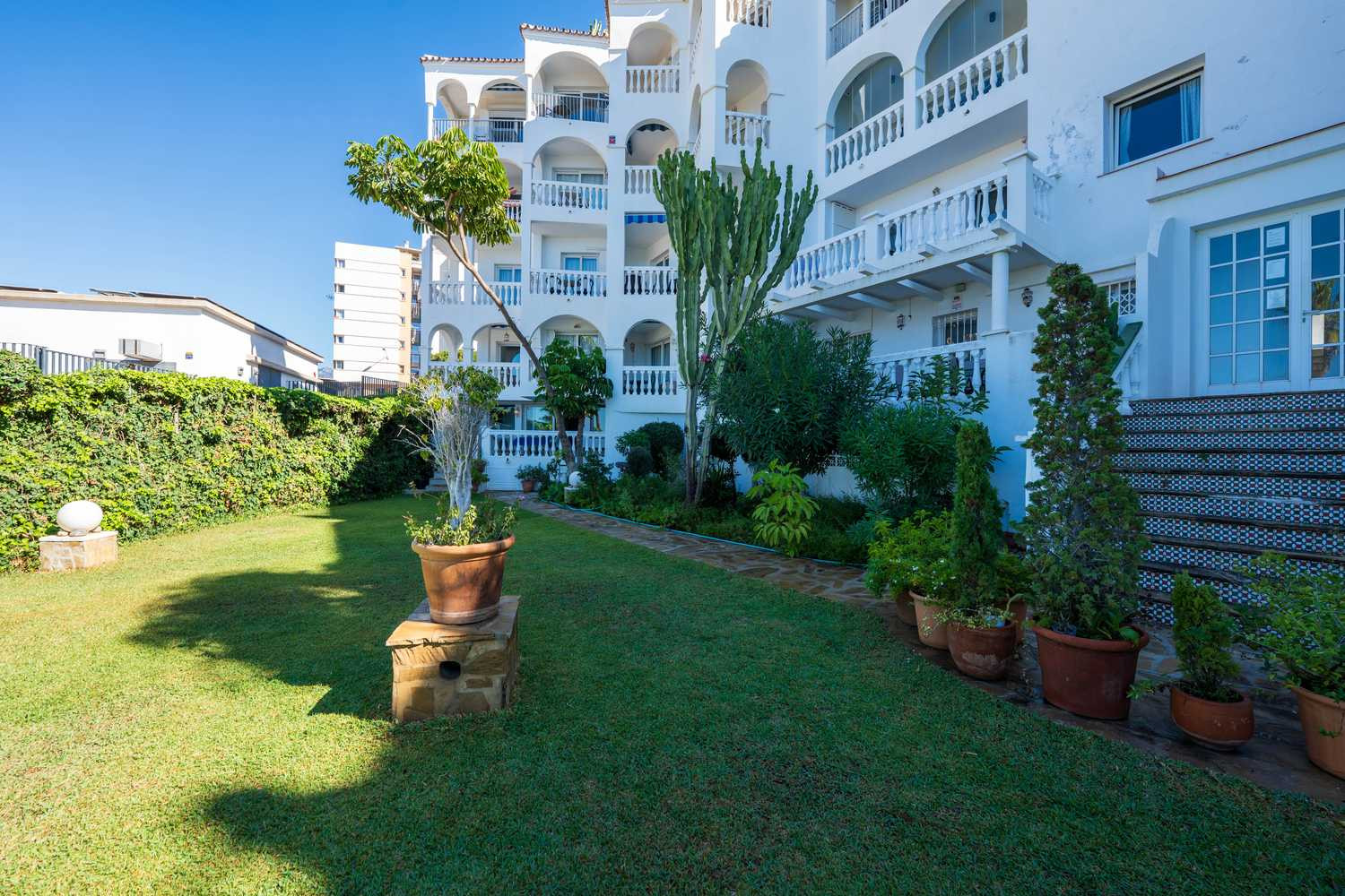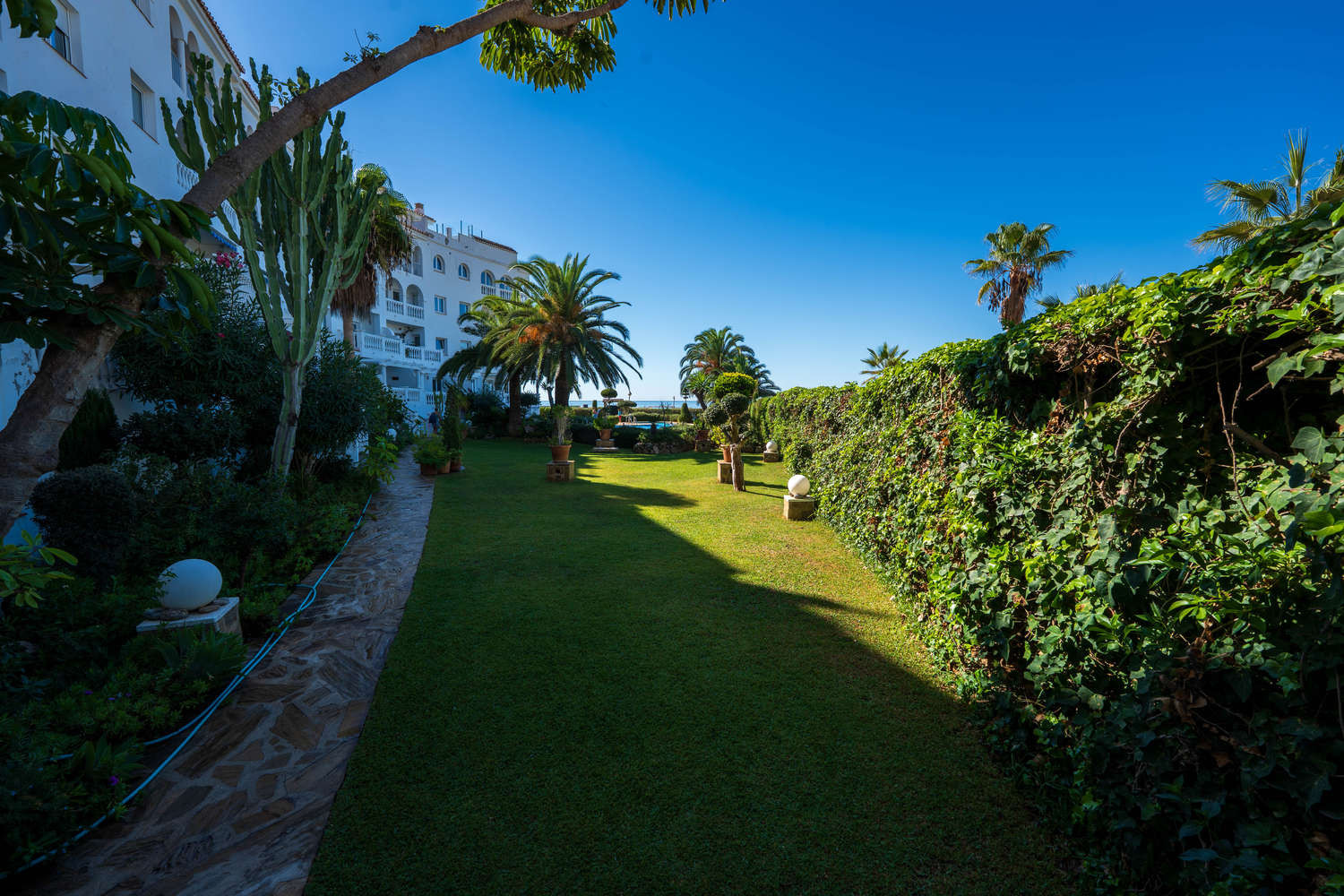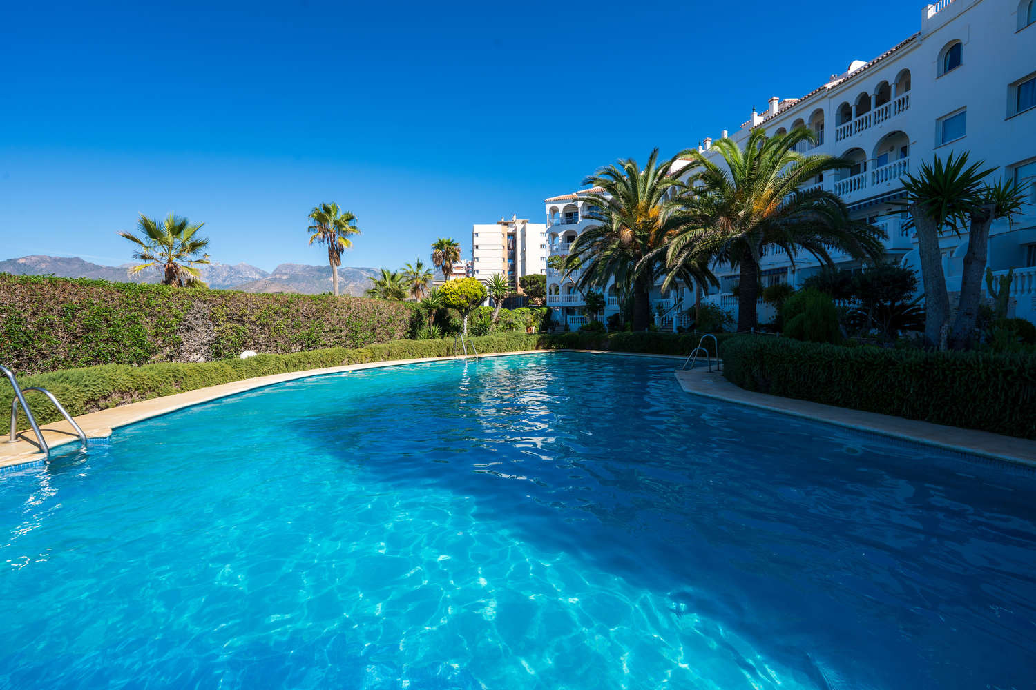 Stella Maris es uno de los lugares frente al mar más codiciados de Nerja debido a su ubicación frente al mar. Dentro de este edificio, este apartamento en primera línea de playa en Nerja destaca por una característica que lo hace especialmente cómodo: es el único de todo el complejo Stella Maris que conecta su terraza privada directamente con el jardín y la piscina.Aquí, la experiencia vacacional es fluida y sin barreras. Disfrute de 120 m² de espacio interior en este espacioso apartamento vacacional en Nerja y de la libertad de salir de su salón, cruzar la terraza y darse un chapuzón en la piscina o bajar a la playa sin ascensores ni pasillos.