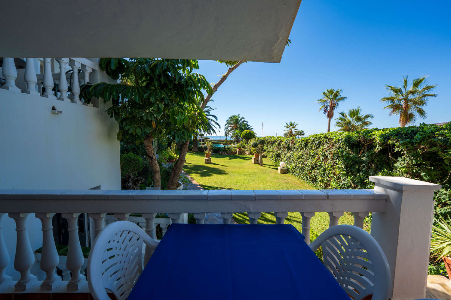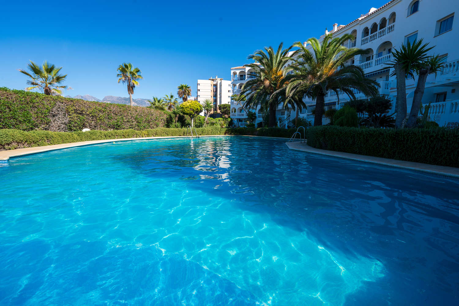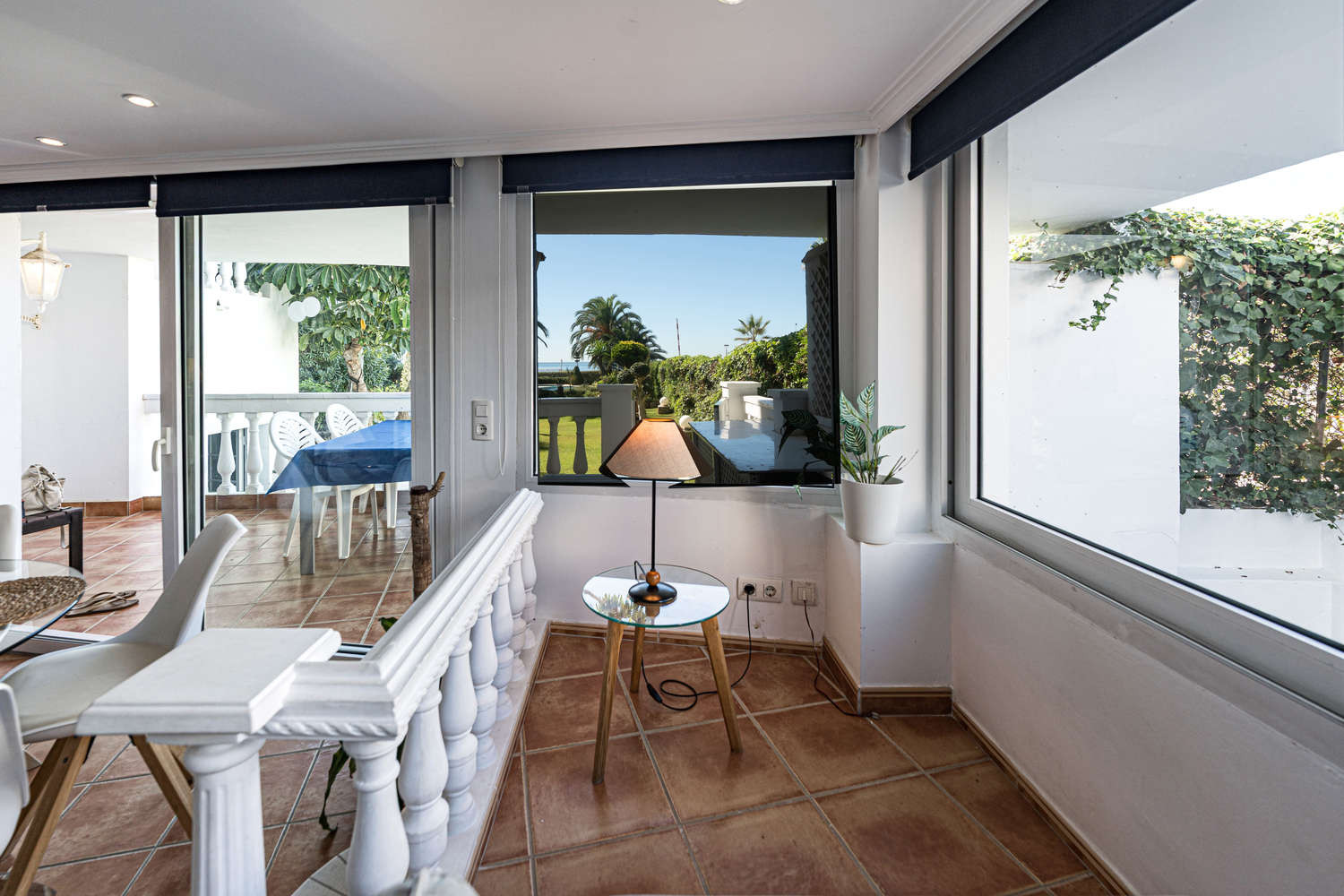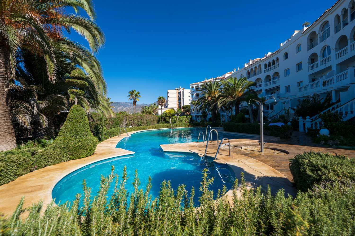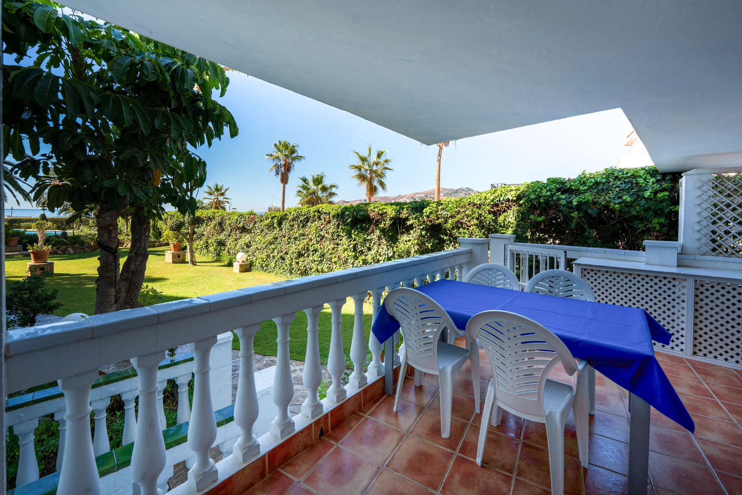 La terraza privada es una extensión natural de la vivienda. Con acceso directo exclusivo al jardín y la piscina comunitarios, permite disfrutar del clima de Nerja con total libertad. Se puede desayunar con vistas al mar y estar en la piscina en cuestión de segundos, aprovechando al máximo la vida al aire libre en este apartamento frente al mar con piscina en Nerja.