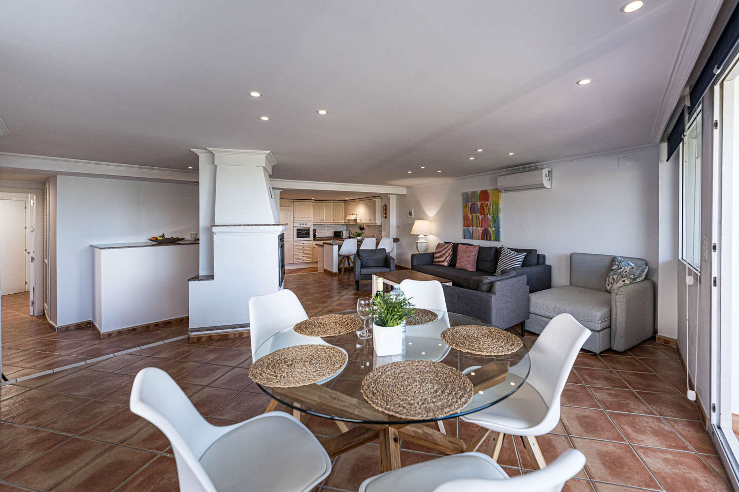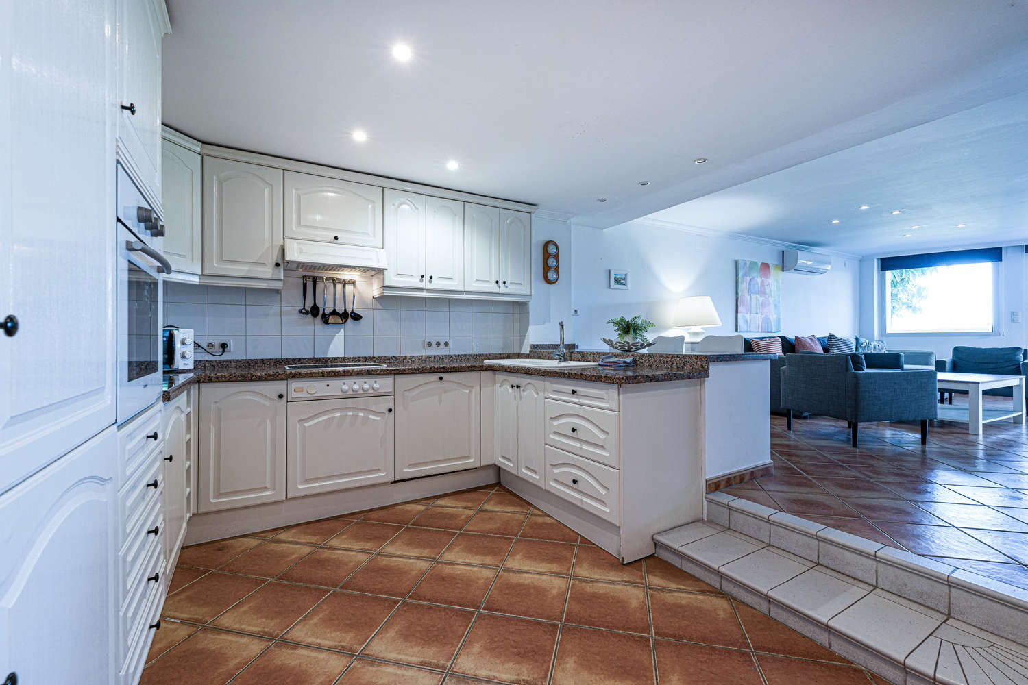 Un amplio apartamento de 120 m² en planta baja, diseñado para ofrecer una gran amplitud. Cuenta con un generoso salón-comedor, una cocina independiente totalmente equipada y 2 dormitorios. Los 2 cuartos de baño completos garantizan la comodidad y la privacidad necesarias para familias o dos parejas que comparten unas vacaciones en Nerja.