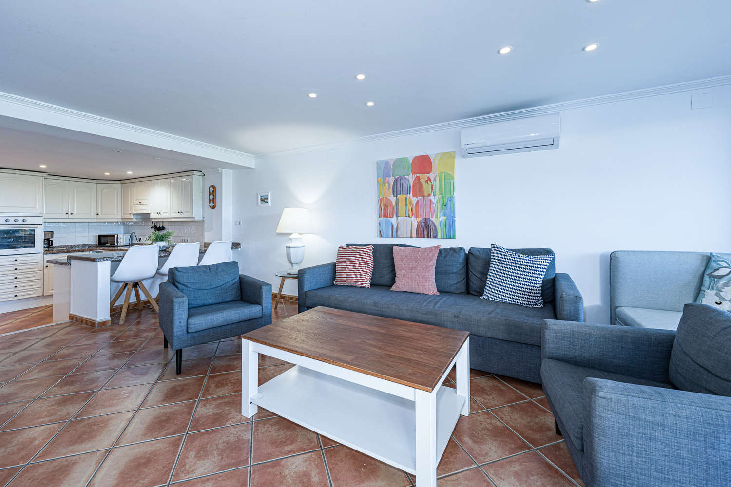 Servicios: Cocina totalmente equipada (horno, microondas, lavadora), TV con canales internacionales, aire acondicionado en todas las habitaciones y mobiliario confortable para unas cómodas vacaciones en Nerja.