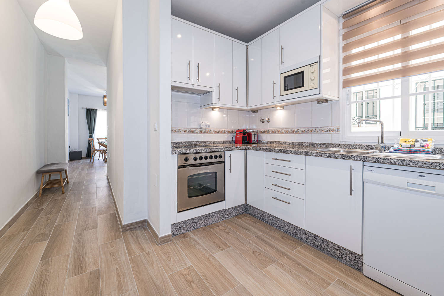 La cocina está totalmente equipada, lo que le permitirá preparar sus platos favoritos con facilidad. Además, el famoso Balcón de Europa se encuentra a solo 1 km a pie, mientras que la Plaza Cangrejo está a solo 400 metros del apartamento y ofrece una amplia variedad de opciones gastronómicas y de ocio.