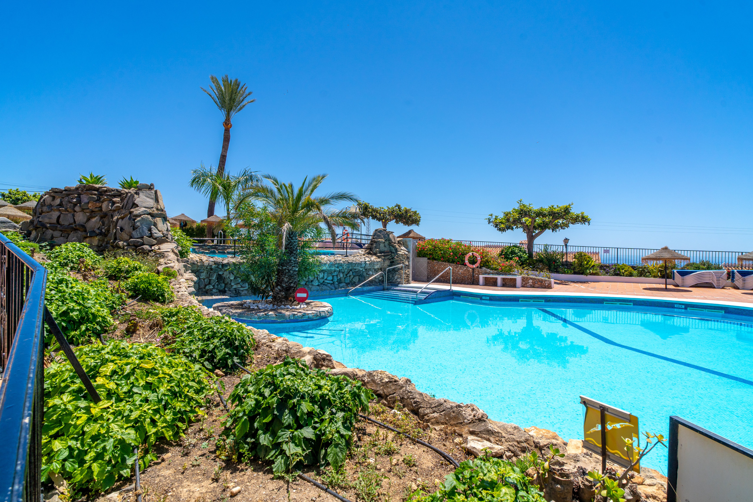 Capistrano Village ofrece dos zonas de piscina extraordinariamente agradables, con bar y restaurante. Este encantador barrio cuenta con casas encaladas de estilo andaluz, jardines floridos meticulosamente cuidados y unas vistas impresionantes del mar Mediterráneo y las montañas circundantes. La urbanización está meticulosamente cuidada, lo que garantiza la limpieza, el mantenimiento regular y unos jardines muy bien cuidados, creando un ambiente acogedor tanto para los residentes como para los visitantes.