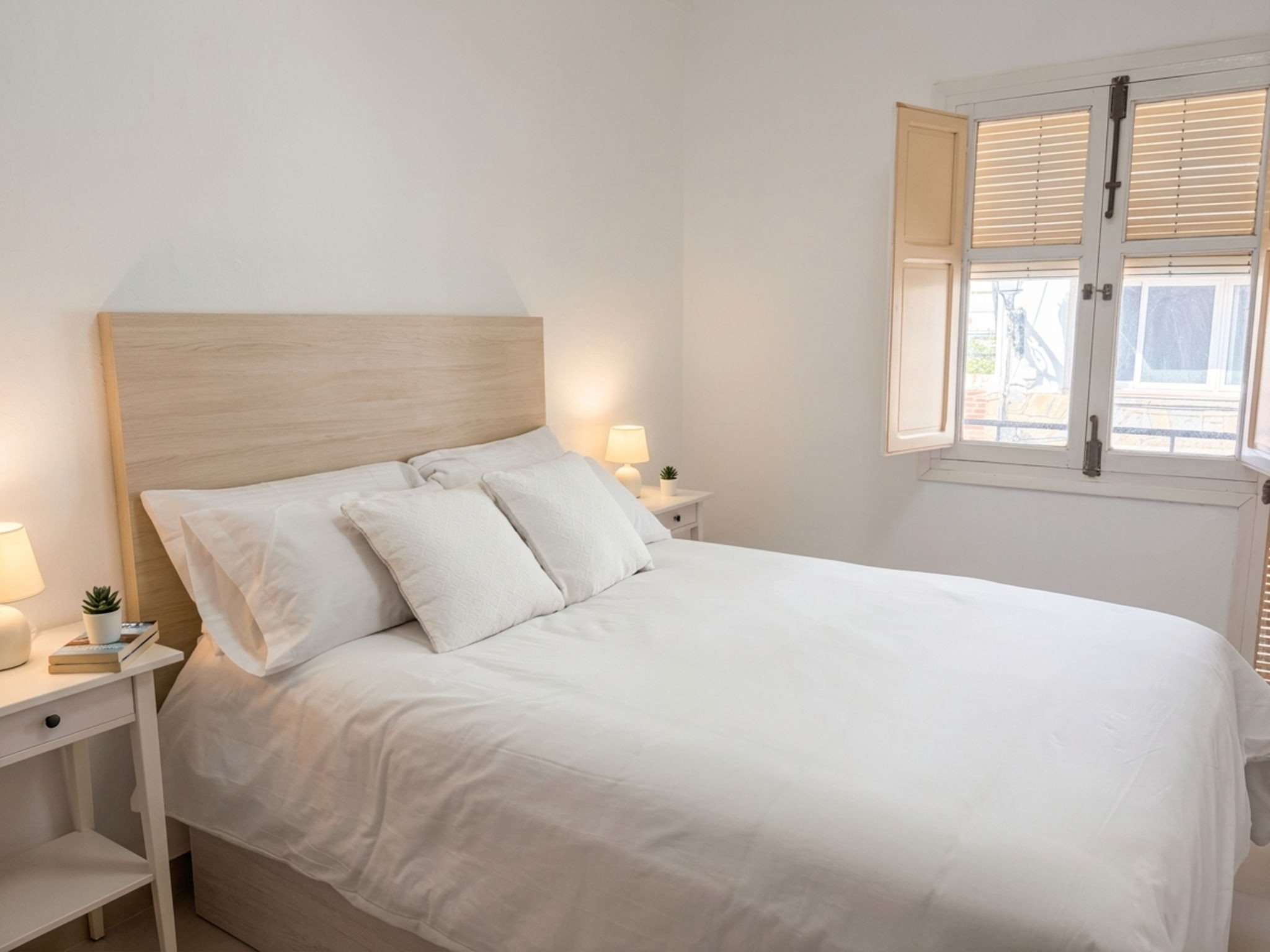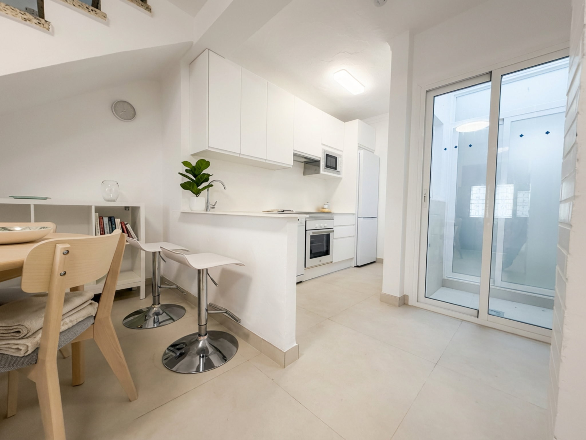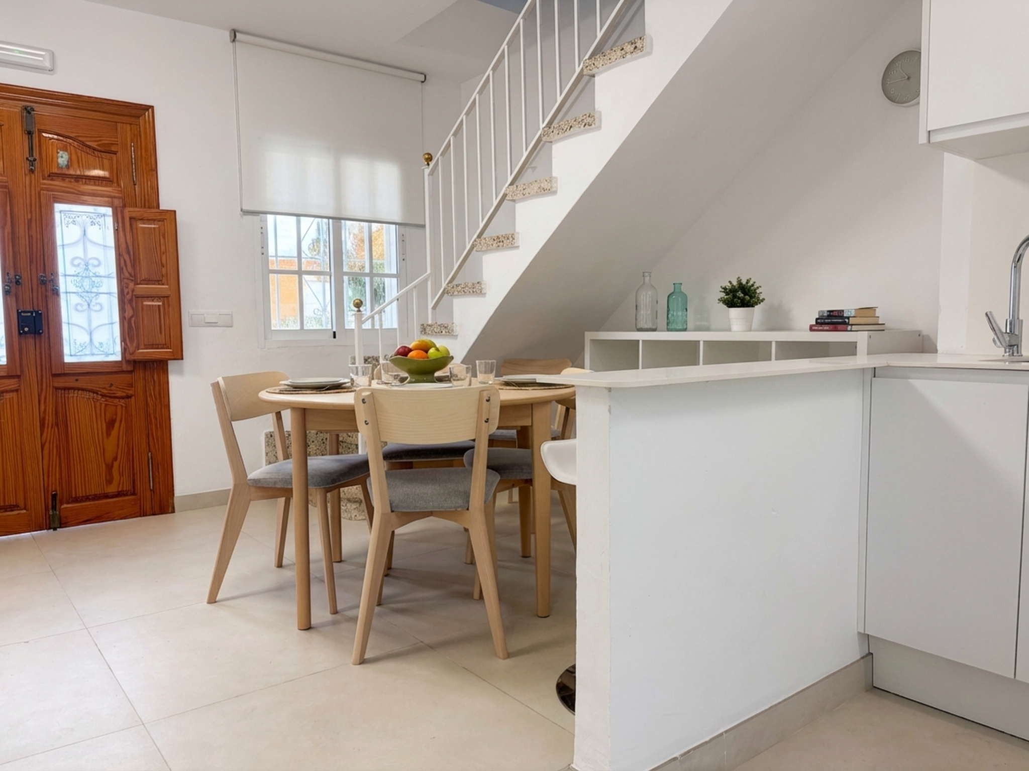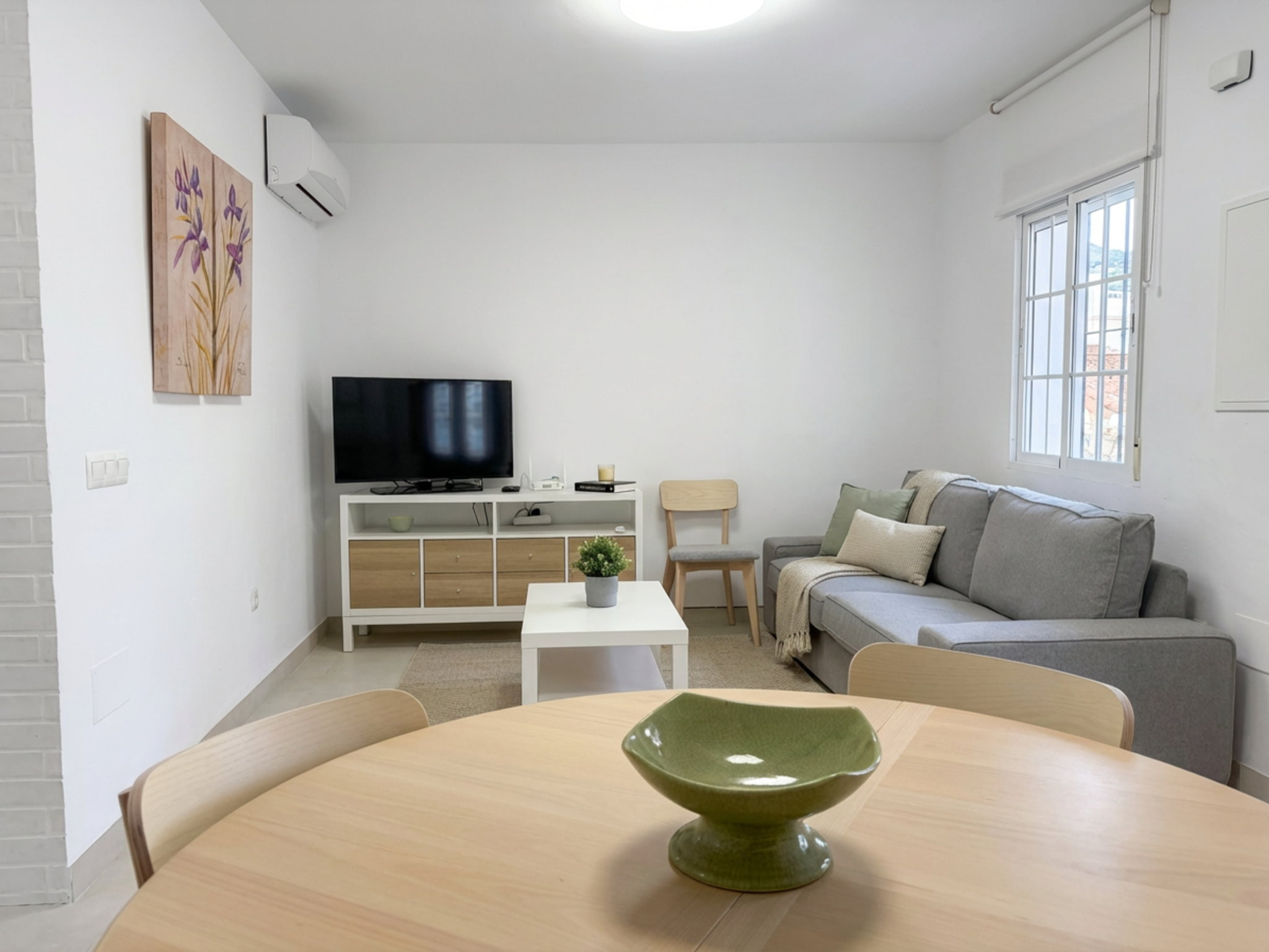 Aunque su nombre es Casa Chica, sus techos altos y su reciente reforma integral ofrecen un espacio amplio y moderno en pleno centro. Al cruzar la puerta, te recibe una zona de estar diáfana con Smart TV y una cocina de concepto abierto, totalmente equipada, pensada para quienes prefieren desayunar con tranquilidad antes de salir a explorar. Lo mejor es que la experiencia comienza en el mismo umbral: solo tienes que salir y caminar menos de 10 minutos para llegar al Balcón de Europa o a las calas más famosas de Nerja, disfrutando de la comodidad de tenerlo todo a mano sin depender de un vehículo.