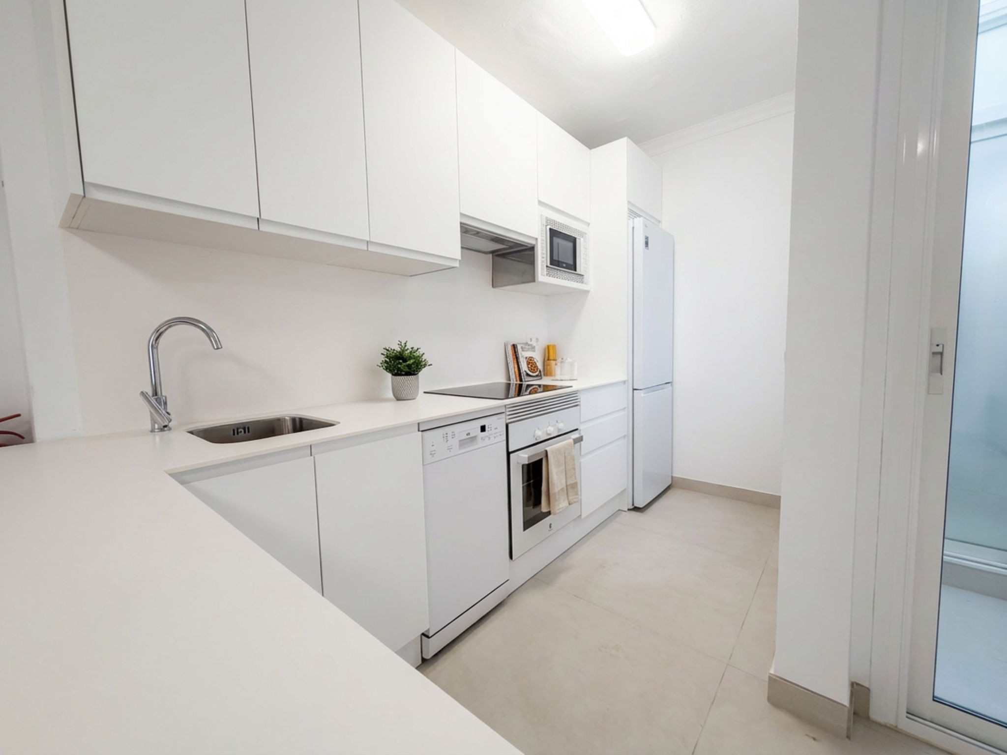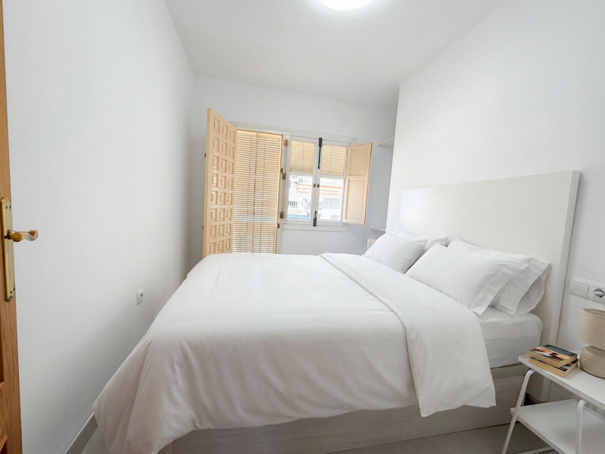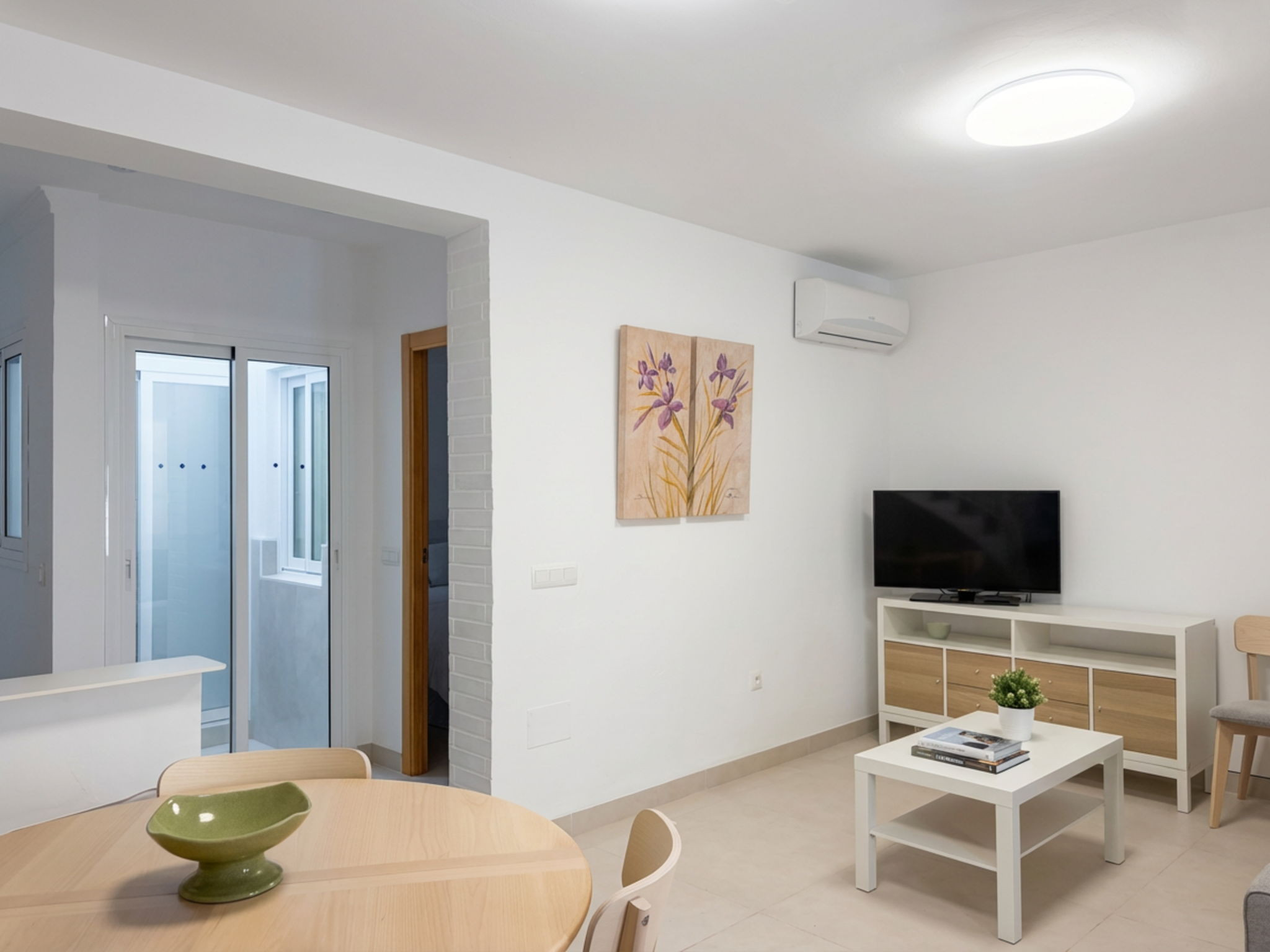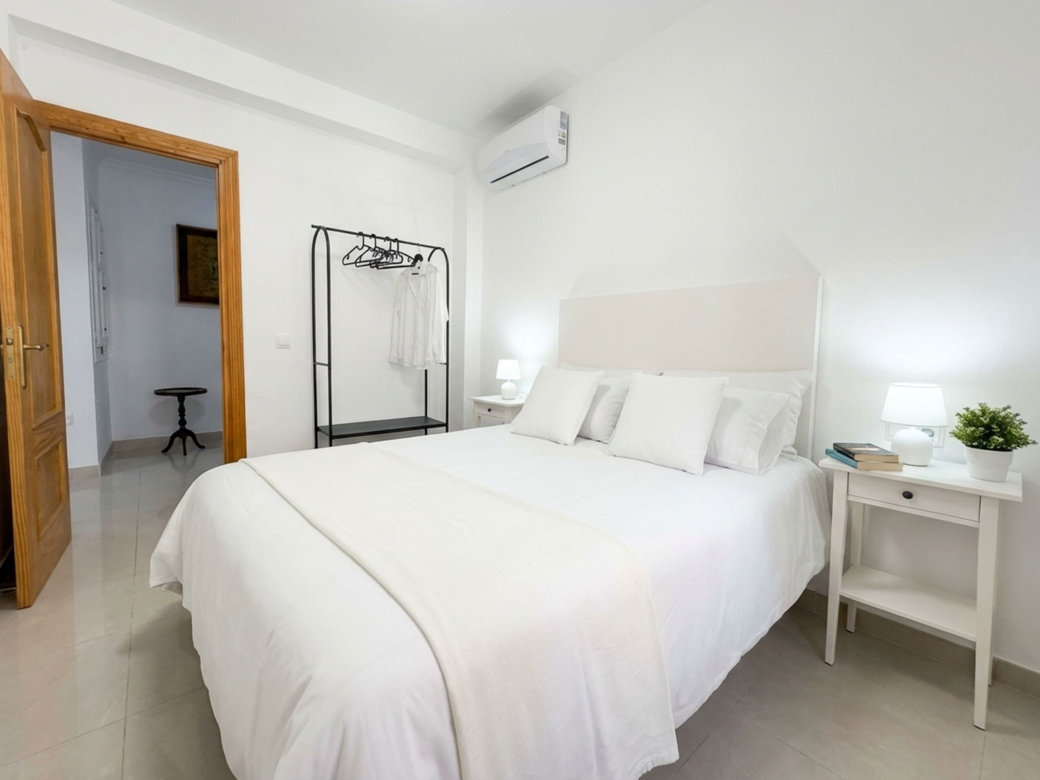Aunque su nombre es Casa Chica, sus techos altos y su reciente reforma integral ofrecen un espacio amplio y moderno en pleno centro. Al cruzar la puerta, te recibe una zona de estar diáfana con Smart TV y una cocina de concepto abierto, totalmente equipada, pensada para quienes prefieren desayunar con tranquilidad antes de salir a explorar. Lo mejor es que la experiencia comienza en el mismo umbral: solo tienes que salir y caminar menos de 10 minutos para llegar al Balcón de Europa o a las calas más famosas de Nerja, disfrutando de la comodidad de tenerlo todo a mano sin depender de un vehículo.