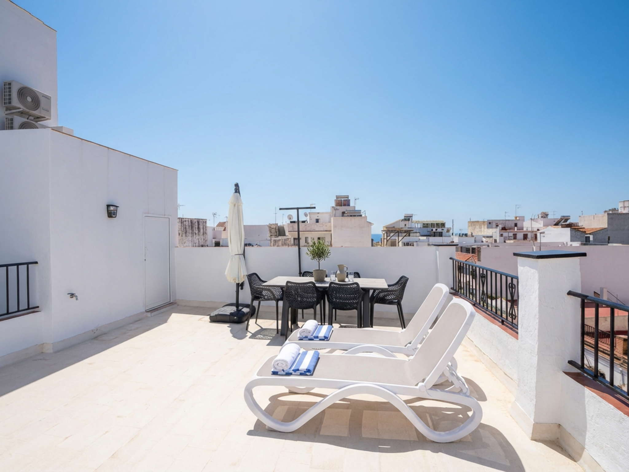 El punto fuerte de esta casa es su nivel superior, al que se accede por una escalera interior. Tras pasar por una zona de lavandería independiente con lavadora, se llega a la terraza solárium de uso exclusivo. Equipada con tumbonas, mesa y sillas, es el rincón perfecto para relajarse tras un día de playa. Desde aquí puedes disfrutar del sol durante todo el día y cenar al aire libre con total privacidad, contemplando los tejados típicos del pueblo con un pequeño asomo del azul del Mediterráneo en el horizonte.Por qué elegir Casa Chica para tus vacaciones