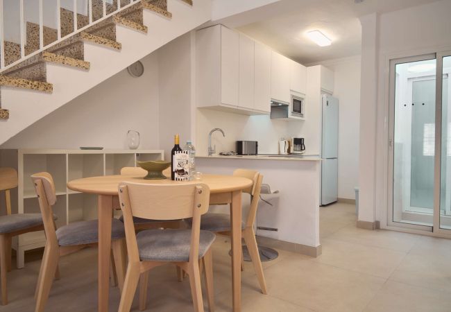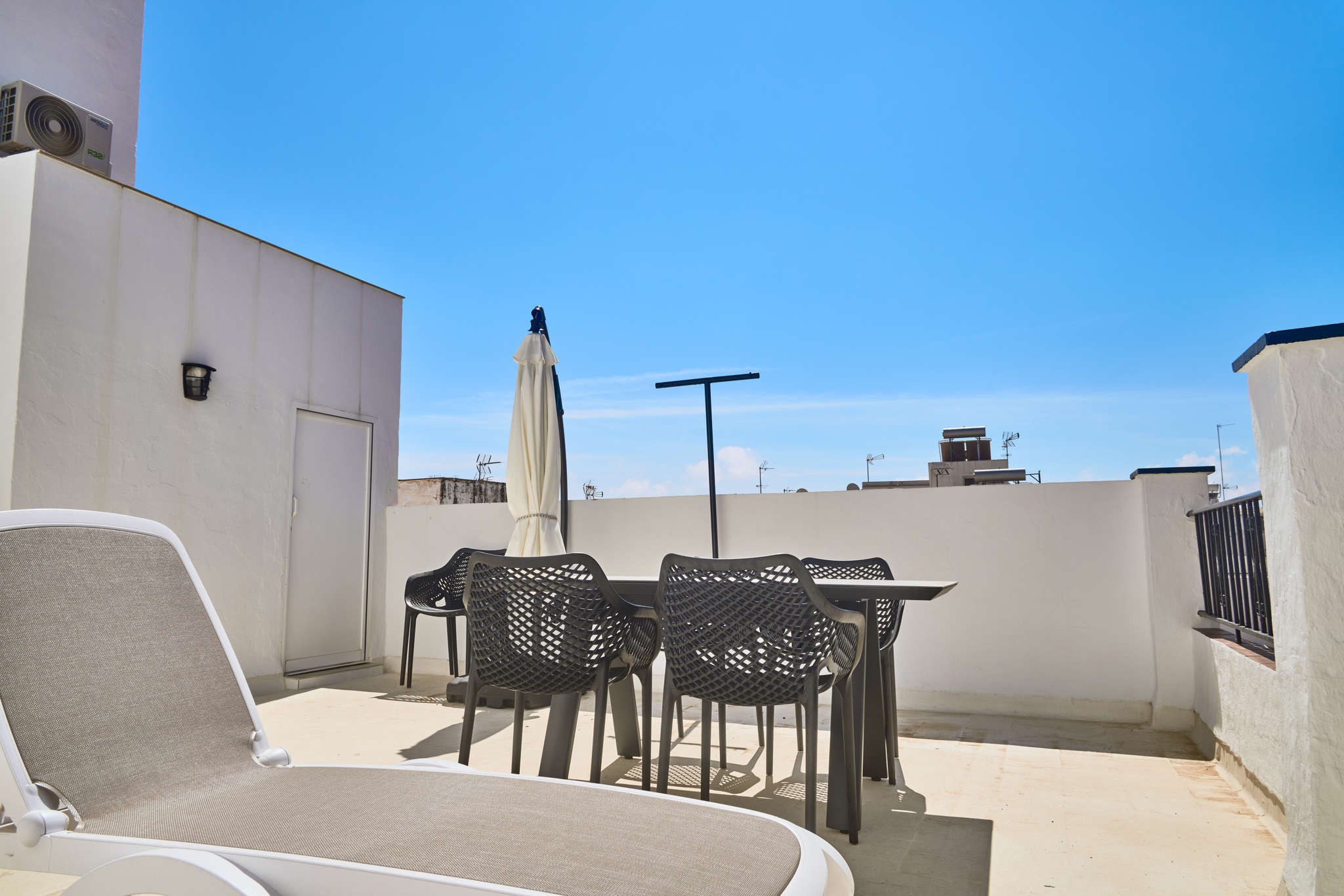 El punto fuerte de esta casa es su nivel superior, al que se accede por una escalera interior. Tras pasar por una zona de lavandería independiente con lavadora, se llega a la terraza solárium de uso exclusivo. Equipada con tumbonas, mesa y sillas, es el rincón perfecto para relajarse tras un día de playa. Desde aquí puedes disfrutar del sol durante todo el día y cenar al aire libre con total privacidad, contemplando los tejados típicos del pueblo con un pequeño asomo del azul del Mediterráneo en el horizonte.Por qué elegir Casa Chica para tus vacaciones