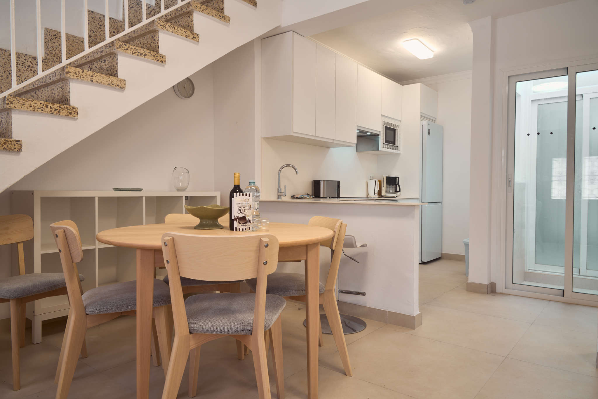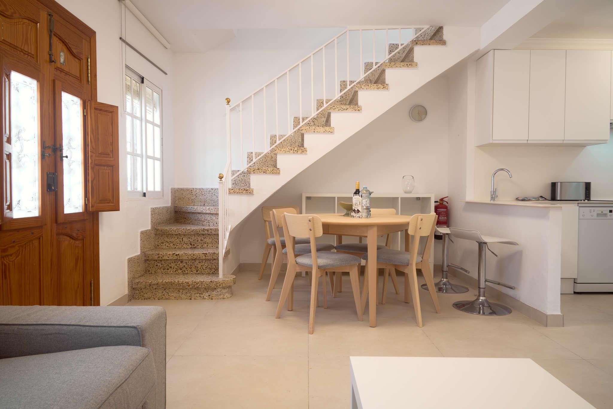 Aunque su nombre es Casa Chica, sus techos altos y su reciente reforma integral ofrecen un espacio amplio y moderno en pleno centro. Al cruzar la puerta, te recibe una zona de estar diáfana con Smart TV y una cocina de concepto abierto, totalmente equipada, pensada para quienes prefieren desayunar con tranquilidad antes de salir a explorar. Lo mejor es que la experiencia comienza en el mismo umbral: solo tienes que salir y caminar menos de 10 minutos para llegar al Balcón de Europa o a las calas más famosas de Nerja, disfrutando de la comodidad de tenerlo todo a mano sin depender de un vehículo.