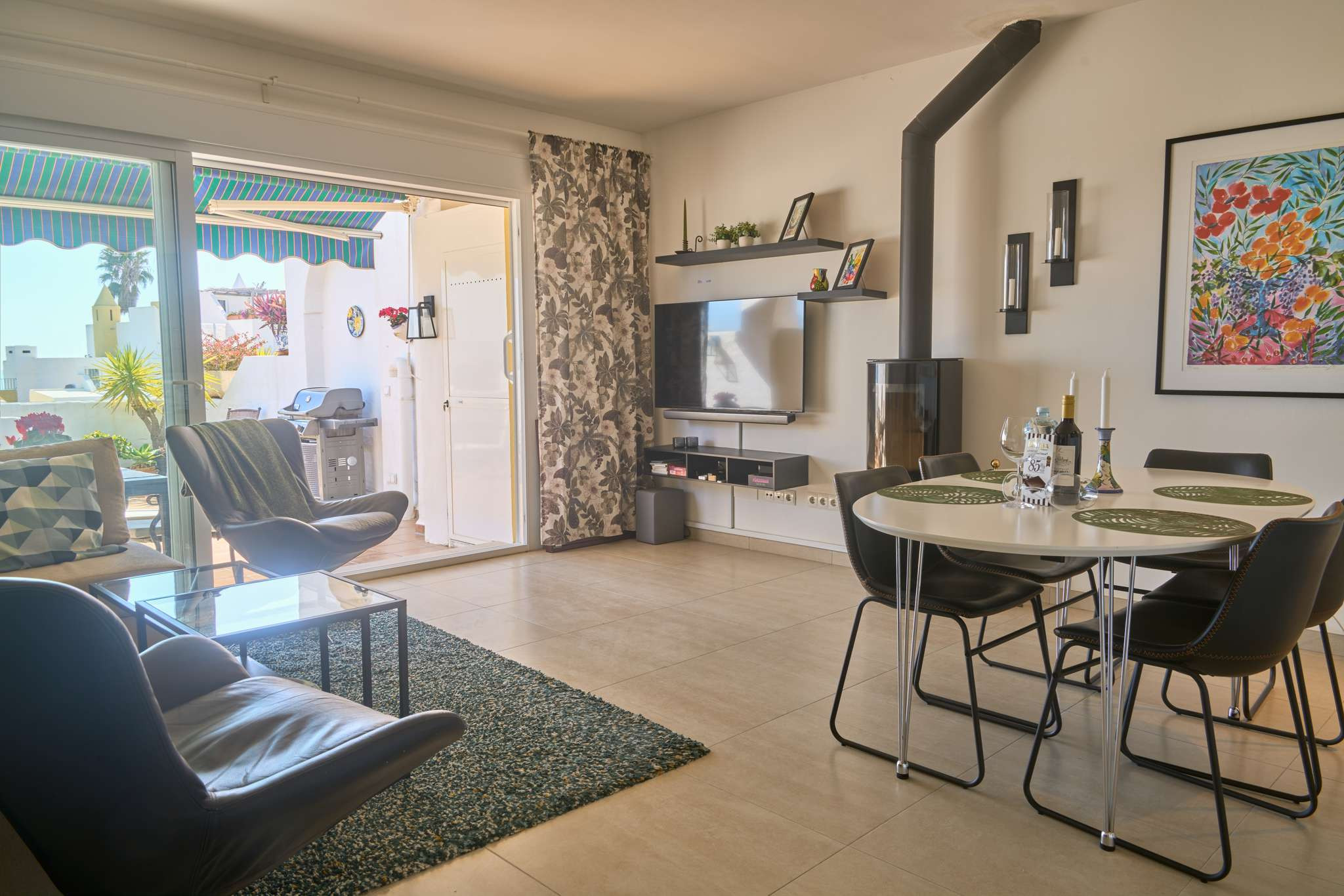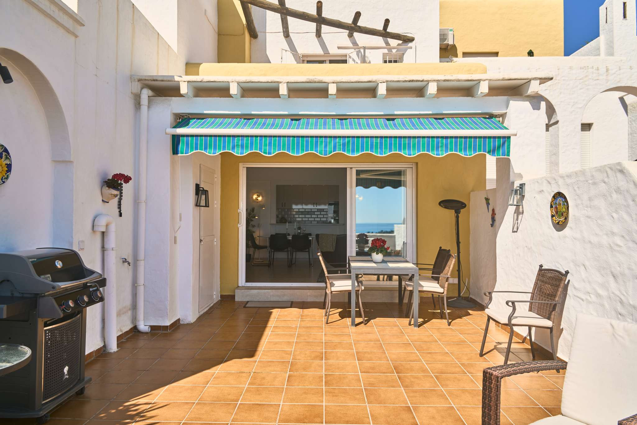 El punto fuerte de Casablanca 9 es su espacio exterior distribuido en tres alturas. En la planta superior dispone de una azotea con tumbonas para aprovechar el sol de Nerja al máximo. Bajando unos escalones, encontrará una segunda terraza orientada para disfrutar del atardecer. La terraza principal, junto al salón, está equipada con barbacoa, sofá tipo lounge y mesa de comedor, convirtiéndose en el lugar perfecto para comidas al aire libre con vistas al mar y montaña.Por qué elegir Casablanca 9 para tus vacaciones