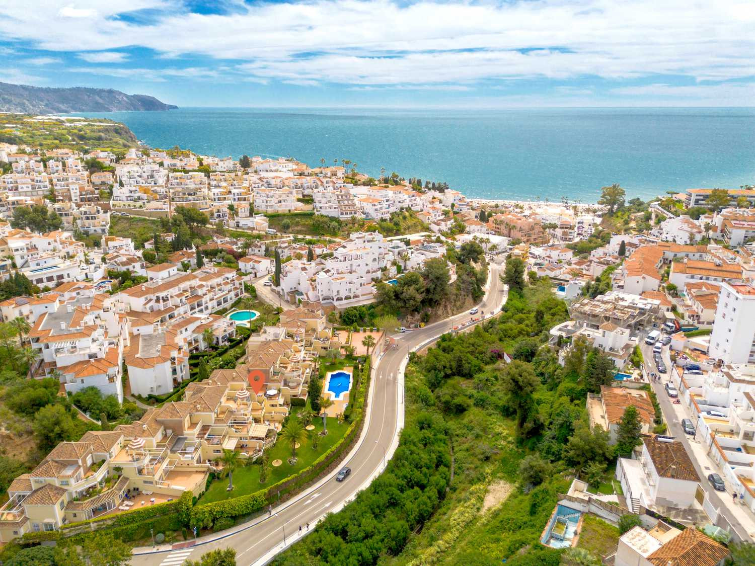 Ubicación y Entorno: Situada en un complejo residencial tranquilo, ideal para familias, a poca distancia de la playa y con fácil acceso a servicios y al centro de Nerja.