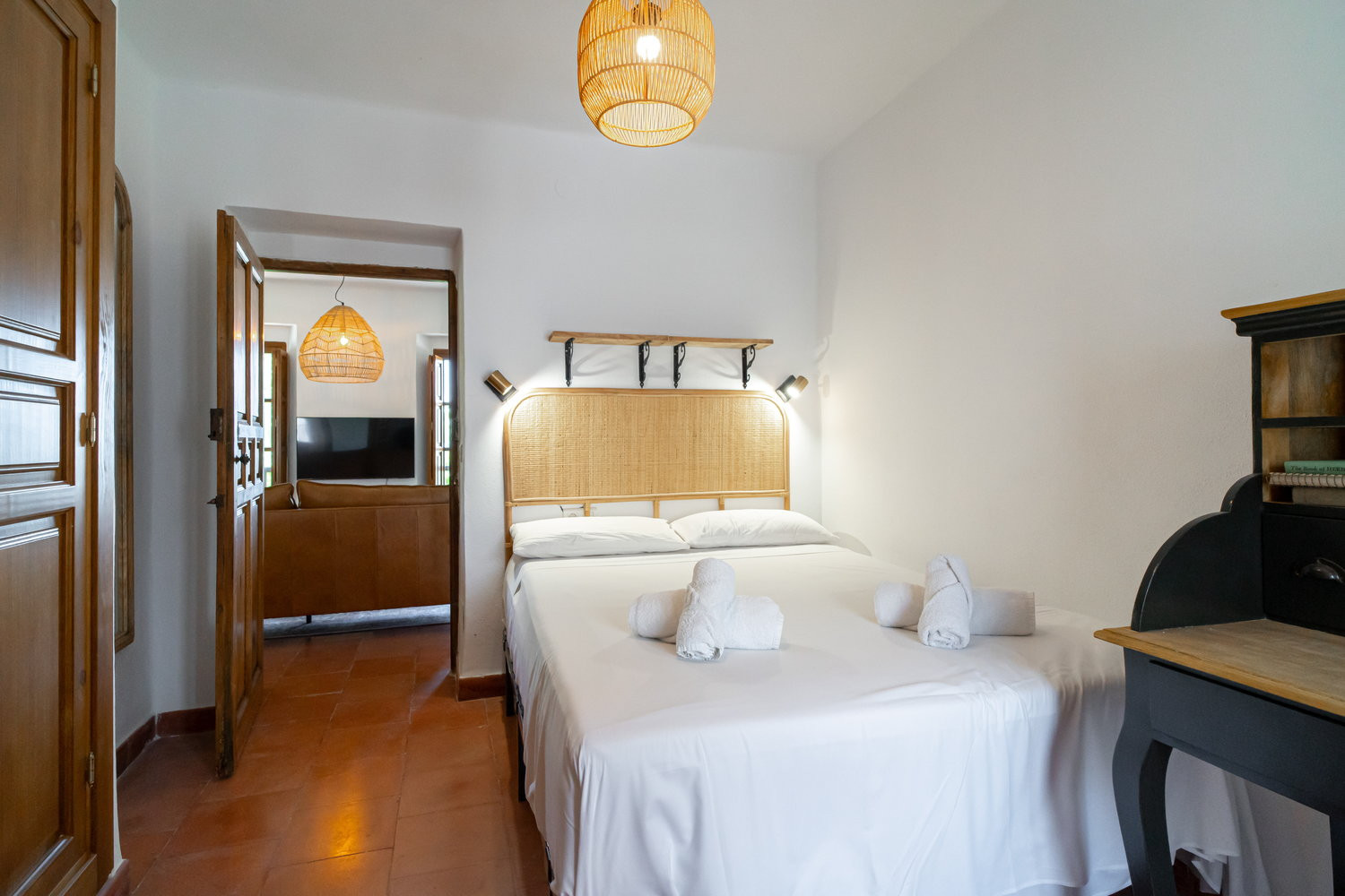 Planta baja: Cocina amplia totalmente equipada, salón y un dormitorio con cama King Size y baño con ducha, con acceso directo a la terraza.