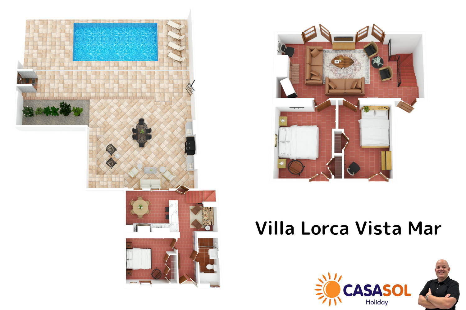 La Propiedad: Villa moderna y decorada con gusto, distribuida en dos plantas para maximizar la comodidad.