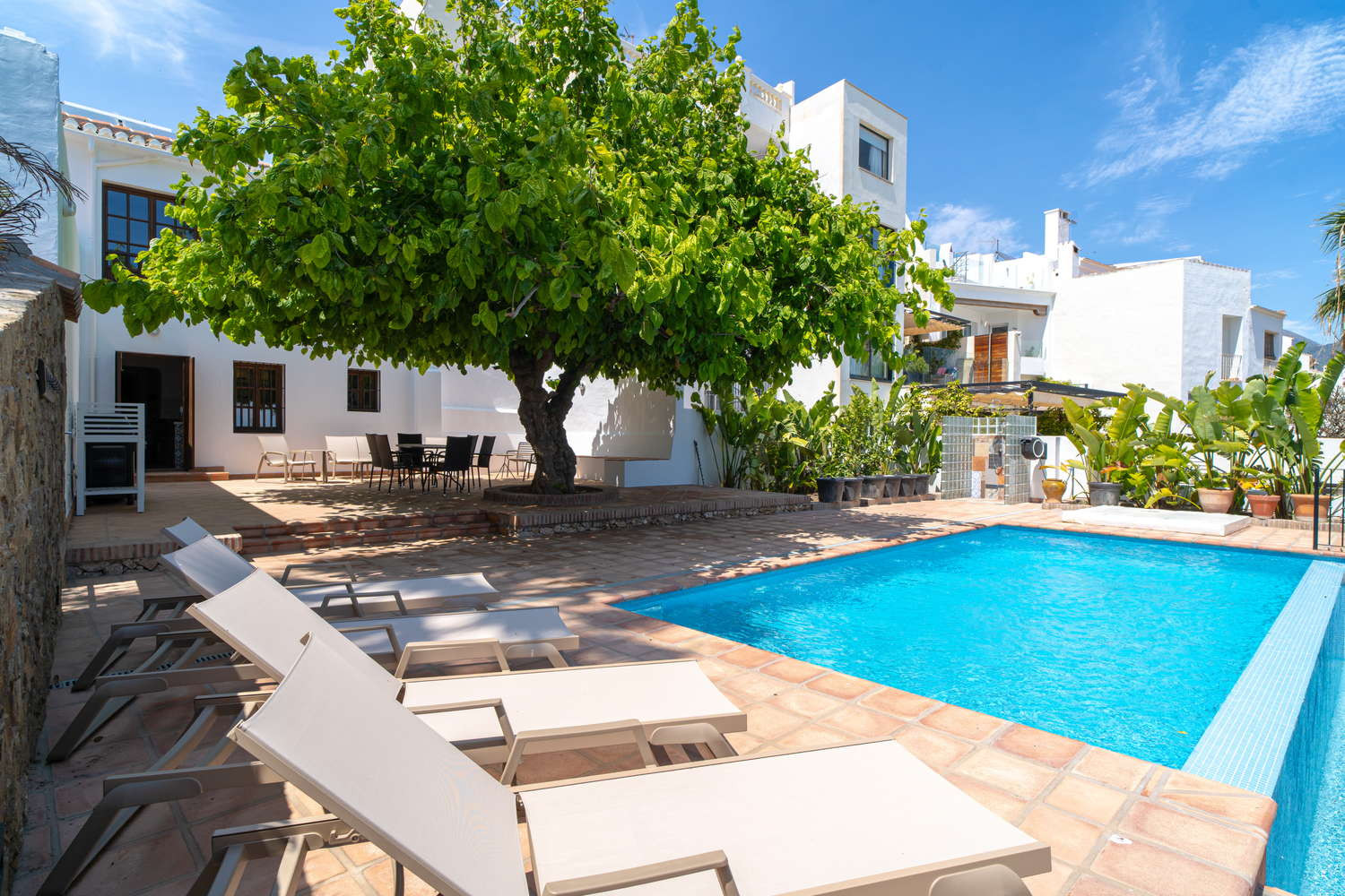Villa Lorca es una villa exclusiva pensada para quienes buscan privacidad, confort y una ubicación realmente privilegiada. Situada junto al Balcón de Europa, combina el encanto andaluz con espacios modernos, ofreciendo una experiencia vacacional única con el Mediterráneo como telón de fondo.La joya de la corona: Su gran protagonista es una impresionante terraza privada de 200 m² con piscina, orientada al suroeste. Esto garantiza sol durante gran parte del día y puestas de sol inolvidables, perfectas para disfrutar desde la zona lounge o la barbacoa con vistas abiertas al mar.