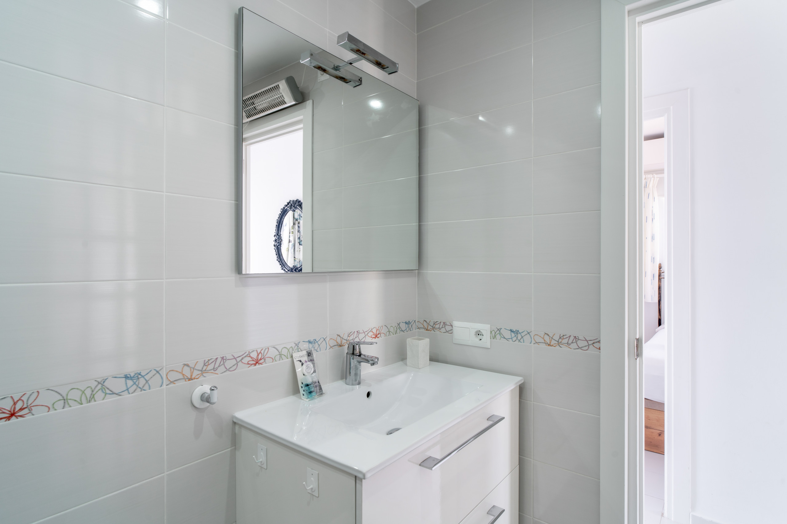 En la planta superior, el dormitorio principal tiene una cómoda cama doble de alta calidad, posicionada hacia el mar para ofrecer una vista impresionante al despertar, así como una terraza con tumbonas para tomar el sol. El segundo dormitorio tiene dos camas individuales igualmente cómodas y de alta calidad. También dispone de un baño moderno con ducha y, en la planta del salón, un aseo para su mayor comodidad.