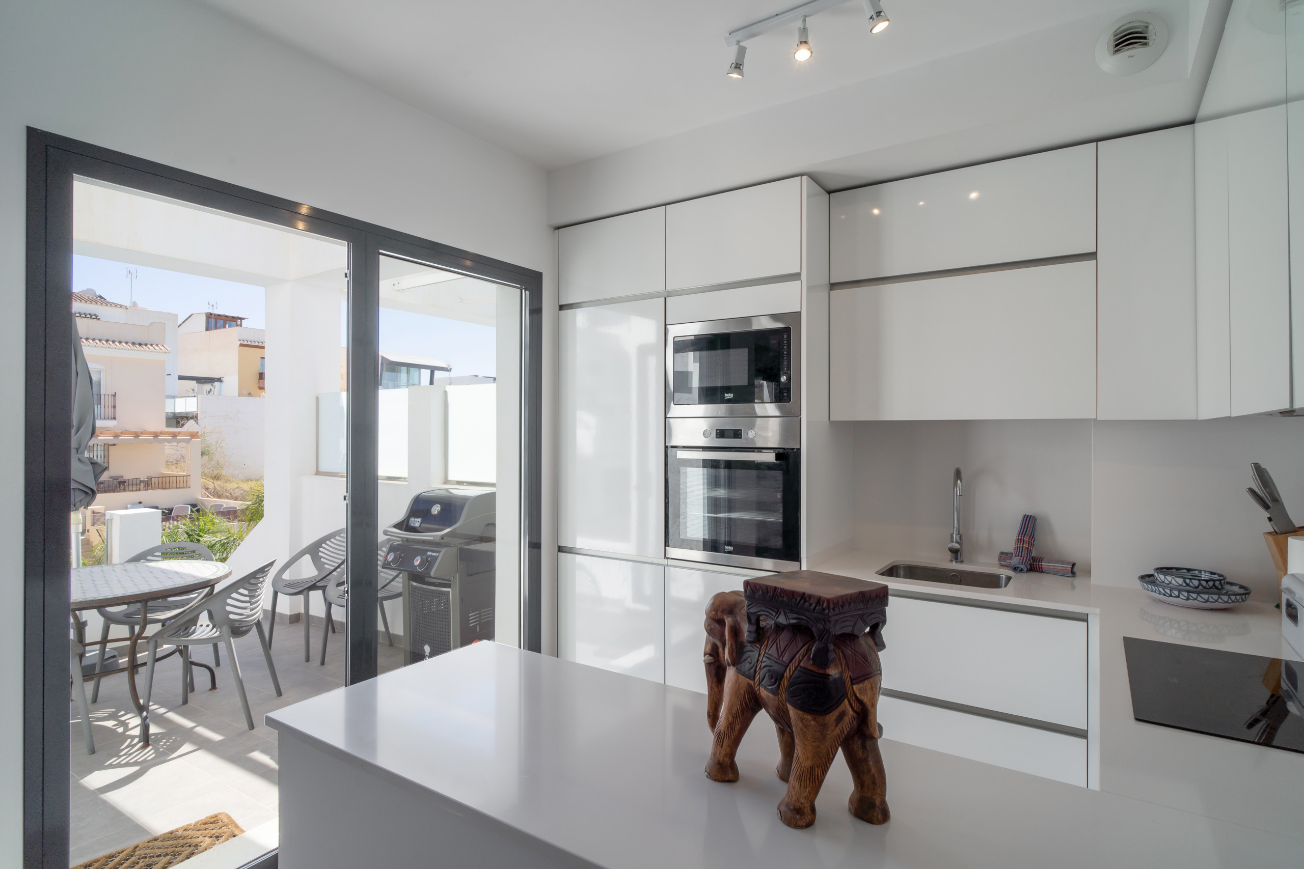 Además de la cocina totalmente equipada, la casa también dispone de terrazas privadas con barbacoa. Esto significa que puedes disfrutar de cenas al aire libre y barbacoas con tus seres queridos en la comodidad y privacidad de tu propia casa. Las instalaciones de la barbacoa son fáciles de usar y perfectas para asar marisco o carne fresca de la zona.